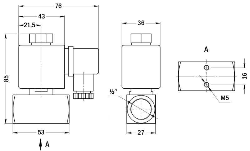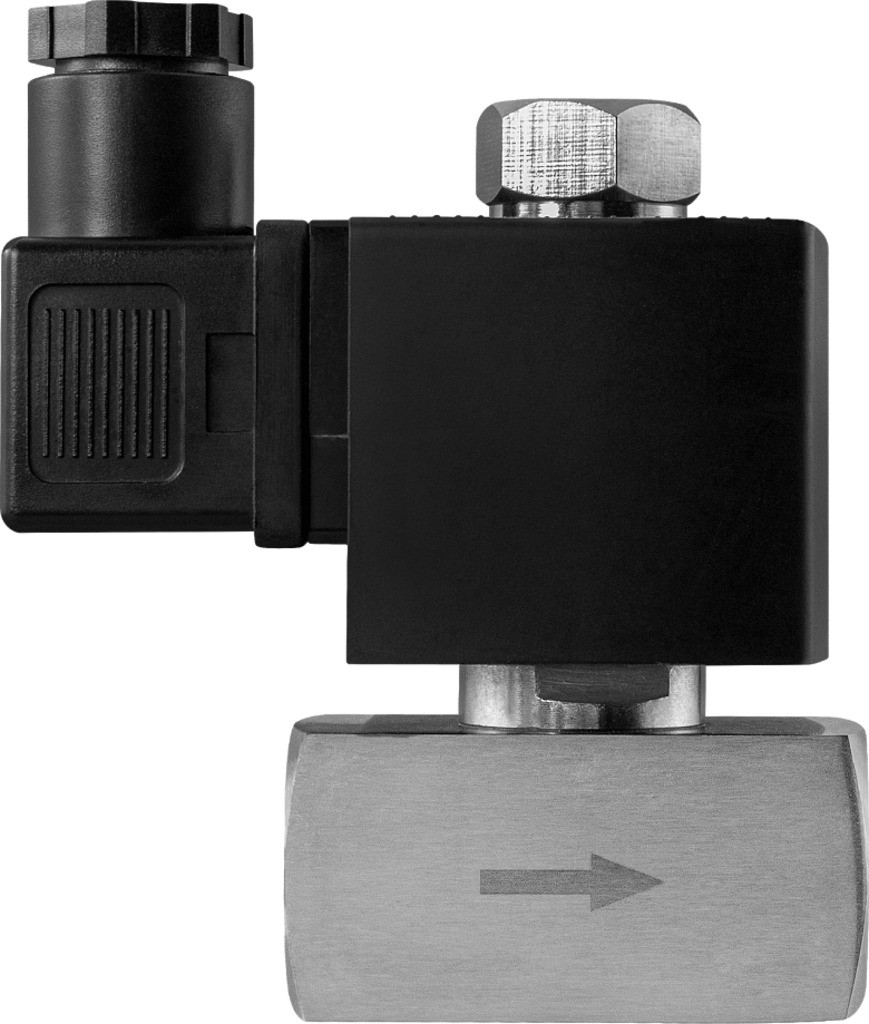 Клапан соленоидный нормально открытый прямого действия с поршнем для управления потоком рабочей среды в трубопроводе