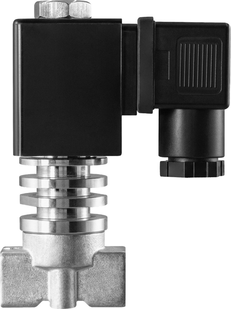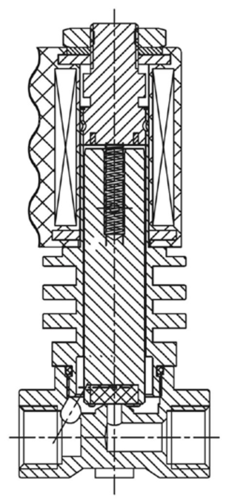 Клапан соленоидный нормально закрытый прямого действия с поршнем для управления потоком рабочей среды в трубопроводе