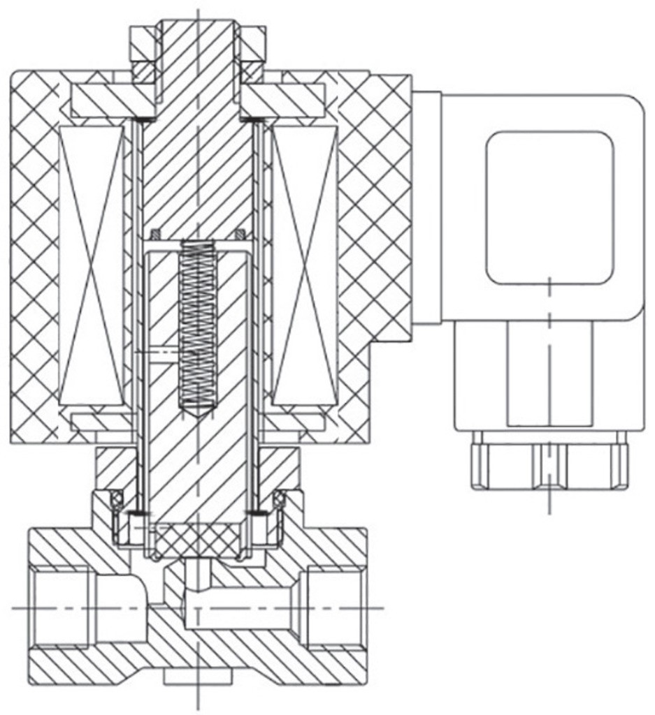 Нормально закрытый соленоидный клапан — это магнитный клапан, в котором закрытое положение сохраняется, если управляющее напряжение на его индукционную катушку не подается. При подаче напряжения на катушку нормально закрытый клапан открывается и пропускает через себя поток рабочей среды. При отключении управляющего напряжения клапан автоматически закрывается и перекрывает поток рабочей среды в трубопроводе. При обрыве провода управляющего напряжения клапан будет закрыт.