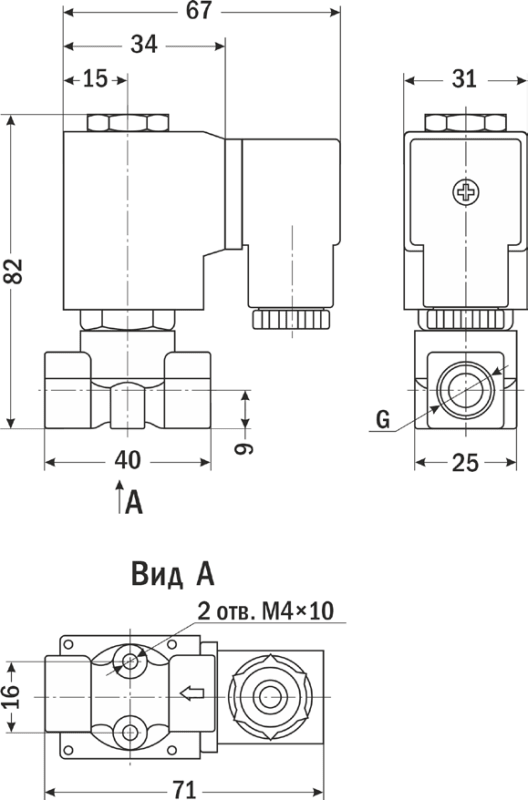Клапан соленоидный нормально закрытый прямого действия с поршнем для управления потоком рабочей среды в трубопроводе