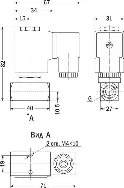 Клапан соленоидный нормально закрытый прямого действия с поршнем для управления потоком рабочей среды в трубопроводе