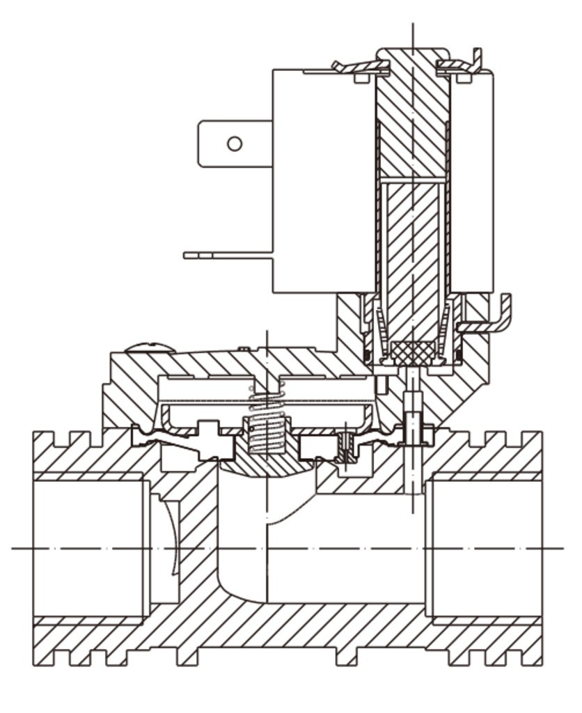 Нормально закрытый соленоидный клапан – это магнитный клапан, в котором закрытое положение сохраняется, если управляющее напряжение на его индукционную катушку не подается. При подаче напряжения на катушку нормально закрытый клапан открывается и пропускает через себя поток рабочей среды. При отключении управляющего напряжения этот клапан автоматически закрывается и перекрывает поток рабочей среды в трубопроводе. При обрыве провода управляющего напряжения