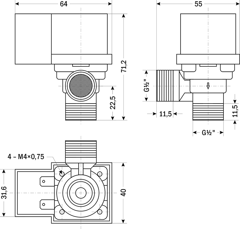Нормально закрытый соленоидный клапан – это магнитный клапан, в котором закрытое положение сохраняется, если управляющее напряжение на его индукционную катушку не подается. При подаче напряжения на катушку нормально закрытый клапан открывается и пропускает через себя поток рабочей среды. При отключении управляющего напряжения этот клапан автоматически закрывается и перекрывает поток рабочей среды в трубопроводе. При обрыве провода управляющего напряжения клапан будет закрыт.