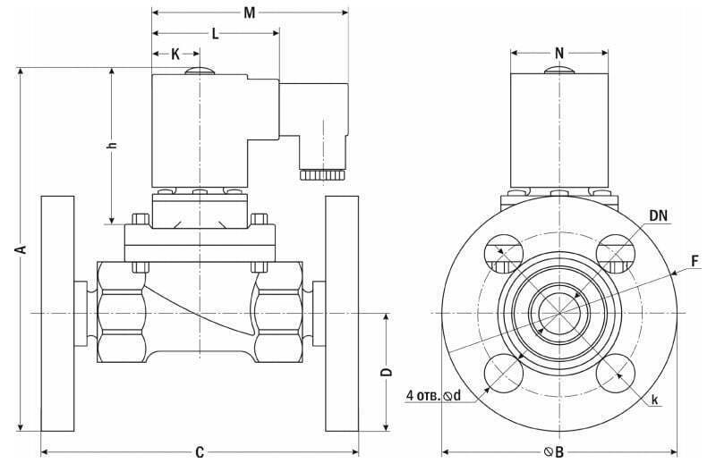 Нормально закрытый соленоидный клапан – это магнитный клапан, в котором закрытое положение сохраняется, если управляющее напряжение на его индукционную катушку не подается. При подаче напряжения на катушку нормально закрытый клапан открывается и пропускает через себя поток рабочей среды. При отключении управляющего напряжения этот клапан автоматически закрывается и перекрывает поток рабочей среды в трубопроводе. При обрыве провода управляющего напряжения клапан будет закрыт.