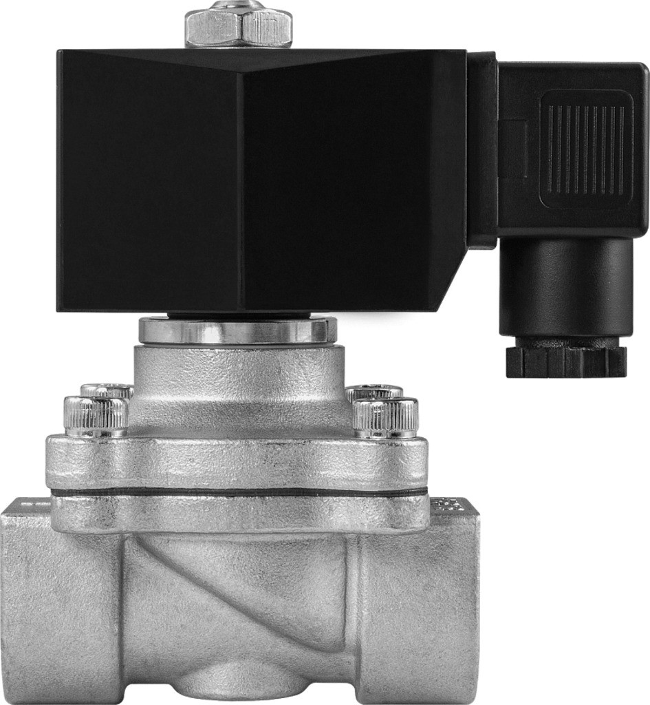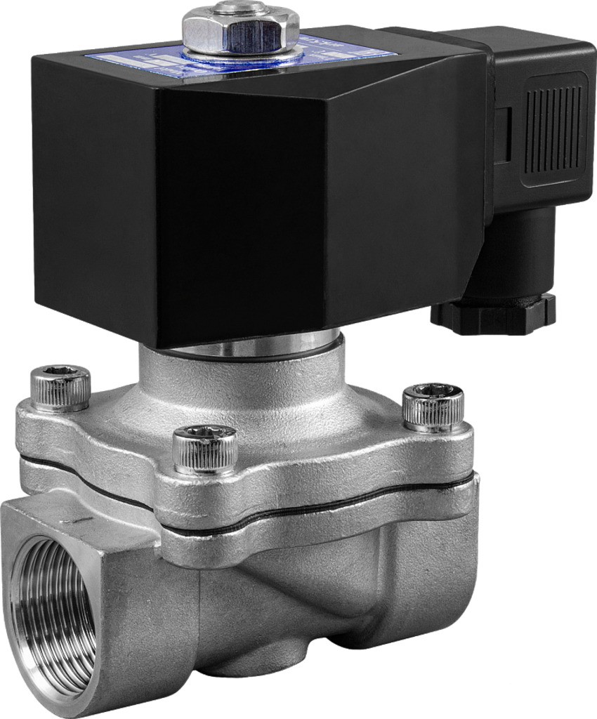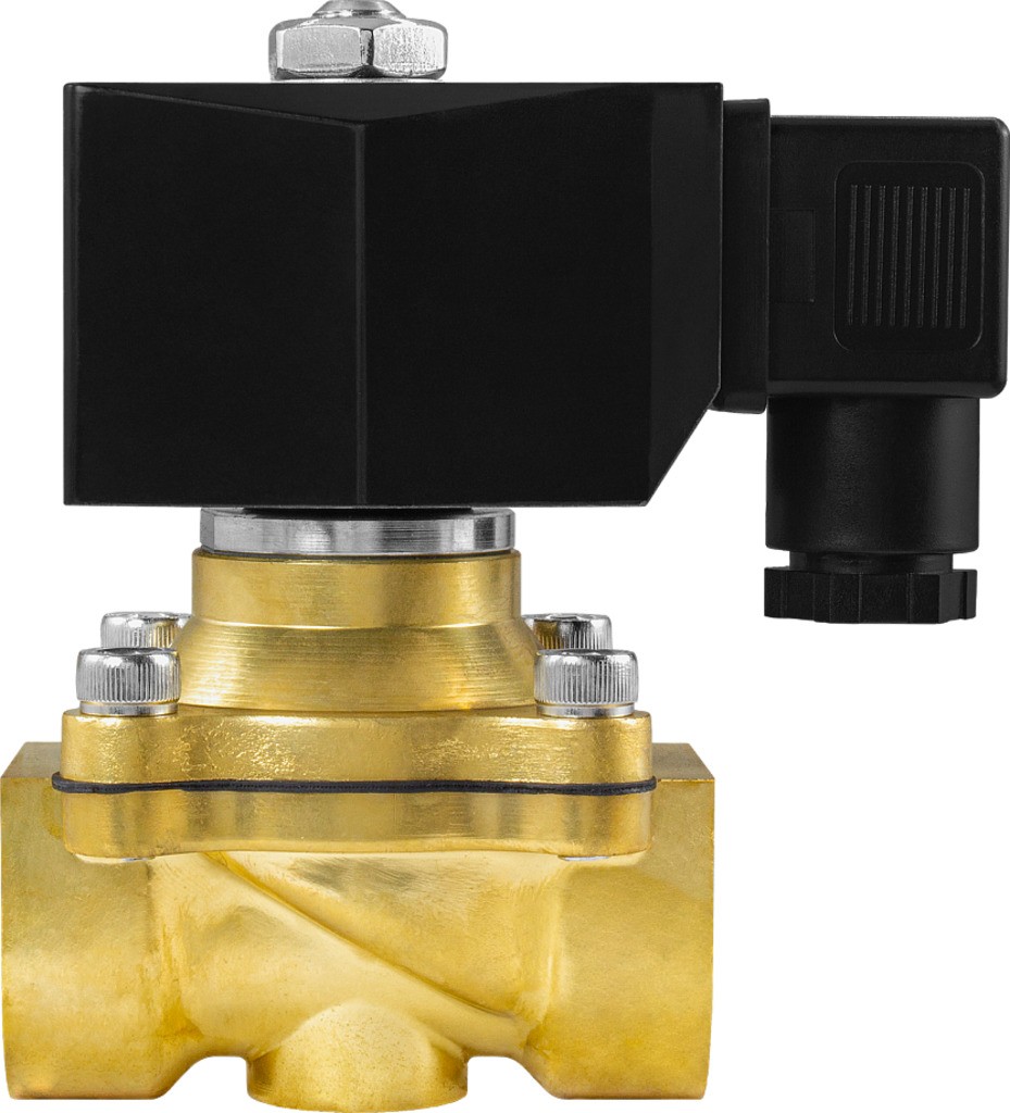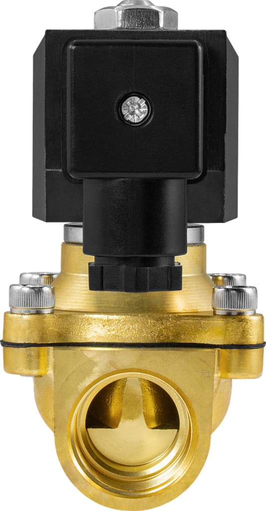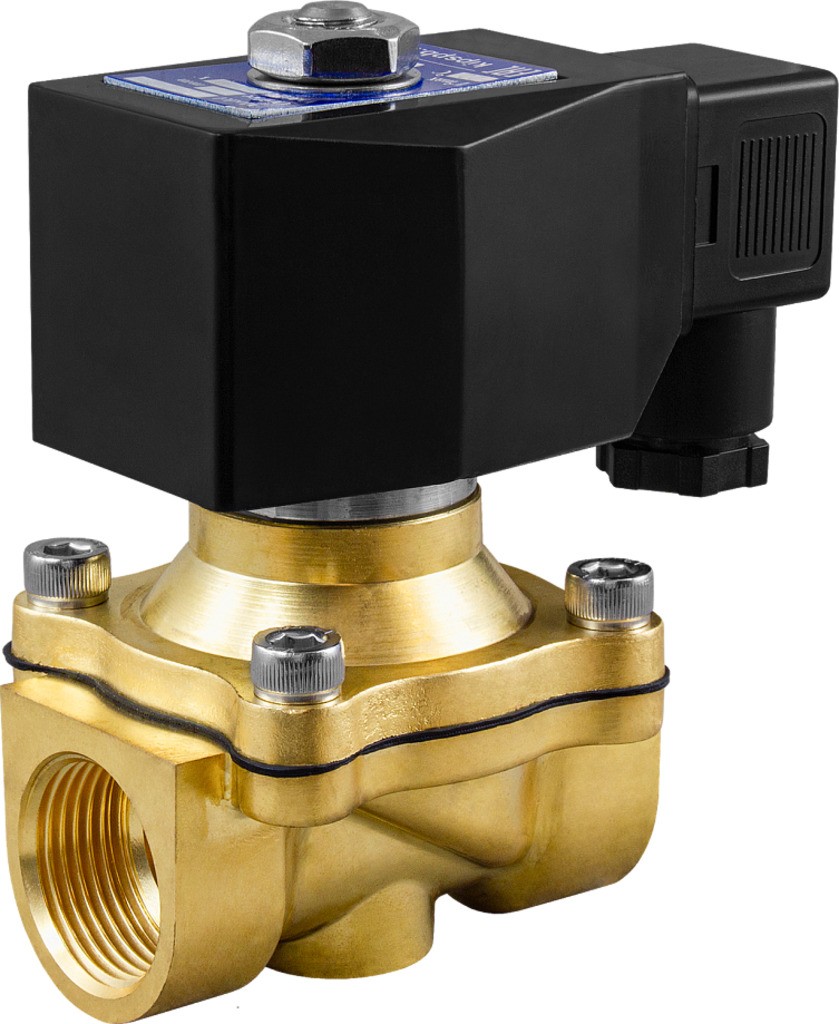 Нормально закрытый соленоидный клапан – это магнитный клапан, в котором закрытое положение сохраняется, если управляющее напряжение на его индукционную катушку не подается. При подаче напряжения на катушку нормально закрытый клапан открывается и пропускает через себя поток рабочей среды. При отключении управляющего напряжения этот клапан автоматически закрывается и перекрывает поток рабочей среды в трубопроводе. При обрыве провода управляющего напряжения клапан будет закрыт.