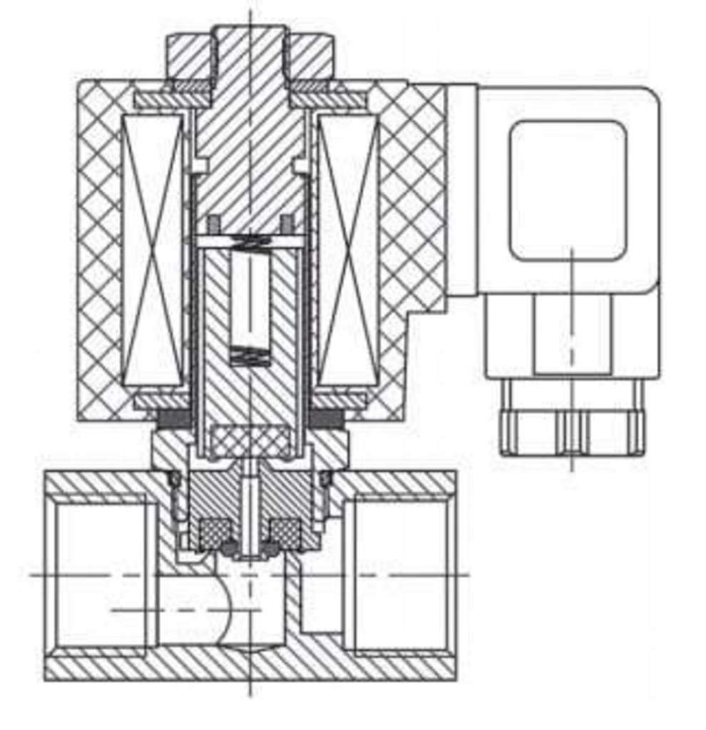 Нормально закрытый соленоидный клапан – это магнитный клапан, в котором закрытое положение сохраняется, если управляющее напряжение на его индукционную катушку не подается. При подаче напряжения на катушку нормально закрытый клапан открывается и пропускает через себя поток рабочей среды. При отключении управляющего напряжения этот клапан автоматически закрывается и перекрывает поток рабочей среды в трубопроводе. При обрыве провода управляющего напряжения клапан будет закрыт.