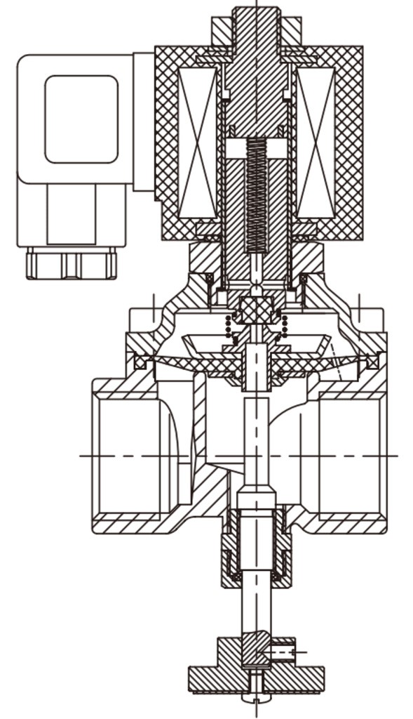 Нормально закрытый соленоидный клапан – это магнитный клапан, в котором закрытое положение сохраняется, если управляющее напряжение на его индукционную катушку не подается. При подаче напряжения на катушку нормально закрытый клапан открывается и пропускает через себя поток рабочей среды. При отключении управляющего напряжения этот клапан автоматически закрывается и перекрывает поток рабочей среды в трубопроводе. При обрыве провода управляющего напряжения клапан будет закрыт.