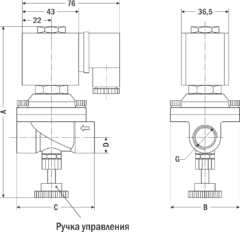 - Для ручного открытия клапана необходимо повернуть ручку по часовой стрелке, для ручного закрытия — против