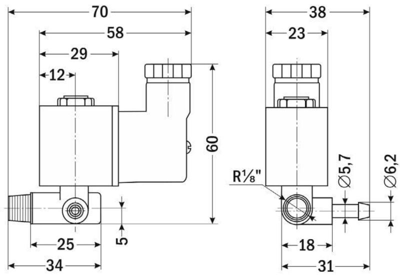 | Присоединение | Резьбовое наруж. R⅛", штуцер ∅ 6,2 мм |