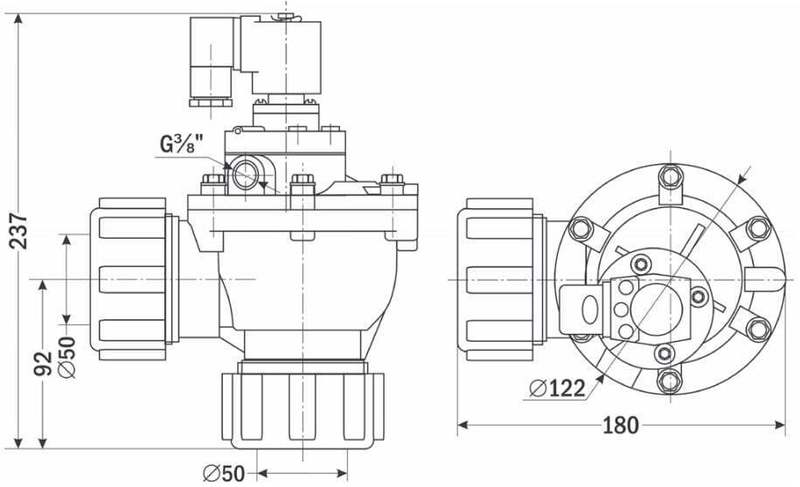 Клапан соленоидный нормально закрытый непрямого действия с диафрагмой AR-RMF-DD предназначен для управления потоком рабочей среды в трубопроводе