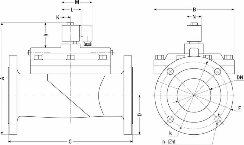 Клапан соленоидный нормально закрытый фланцевый непрямого действия с диафрагмой AR-YCD21F предназначен для управления потоком рабочей среды в трубопроводе