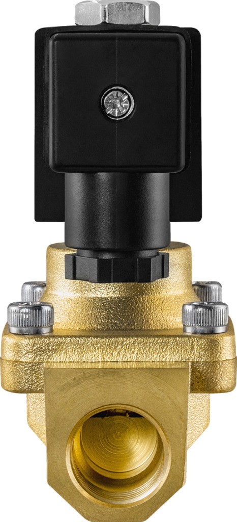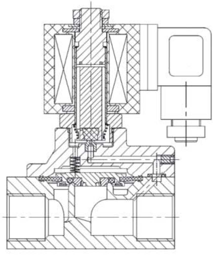Нормально закрытый соленоидный клапан – это магнитный клапан, в котором закрытое положение сохраняется, если управляющее напряжение на его индукционную катушку не подается. При подаче напряжения на катушку нормально закрытый клапан открывается и пропускает через себя поток рабочей среды. При отключении управляющего напряжения этот клапан автоматически закрывается и перекрывает поток рабочей среды в трубопроводе. При обрыве провода управляющего напряжения клапан будет закрыт.