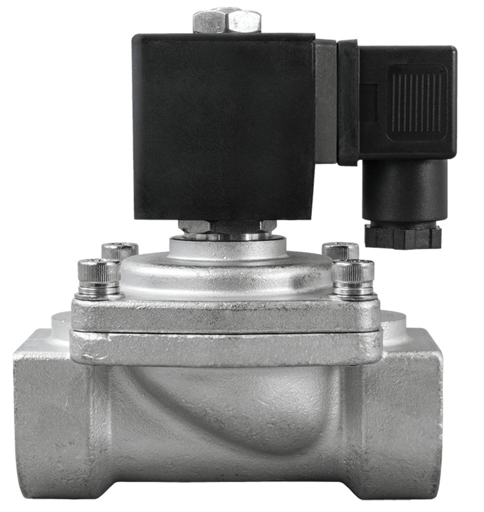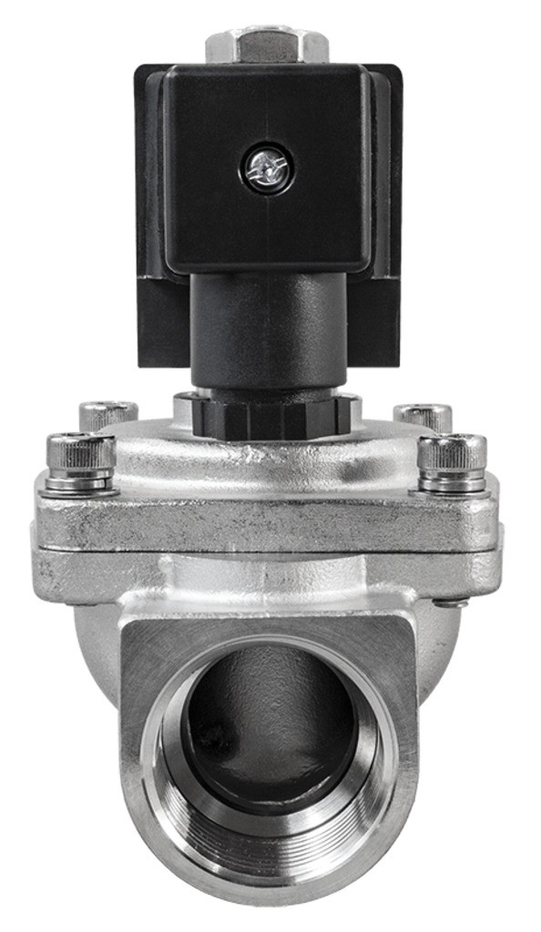 Нормально закрытый соленоидный клапан – это магнитный клапан, в котором закрытое положение сохраняется, если управляющее напряжение на его индукционную катушку не подается. При подаче напряжения на катушку нормально закрытый клапан открывается и пропускает через себя поток рабочей среды. При отключении управляющего напряжения этот клапан автоматически закрывается и перекрывает поток рабочей среды в трубопроводе. При обрыве провода управляющего напряжения клапан будет закрыт.