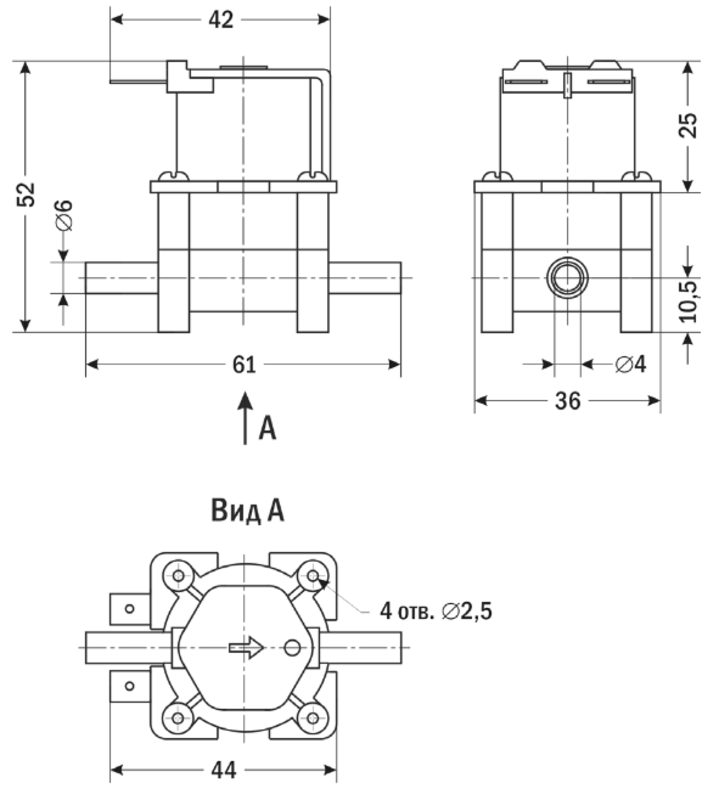 | Присоединение | 2 штуцера ∅ 6 мм | |
