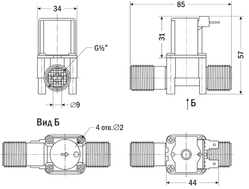Нормально закрытый соленоидный клапан – это магнитный клапан, в котором закрытое положение сохраняется, если управляющее напряжение на его индукционную катушку не подается. При подаче напряжения на катушку нормально закрытый клапан открывается и пропускает через себя поток рабочей среды. При отключении управляющего напряжения этот клапан автоматически закрывается и перекрывает поток рабочей среды в трубопроводе. При обрыве провода управляющего напряжения клапан будет закрыт.