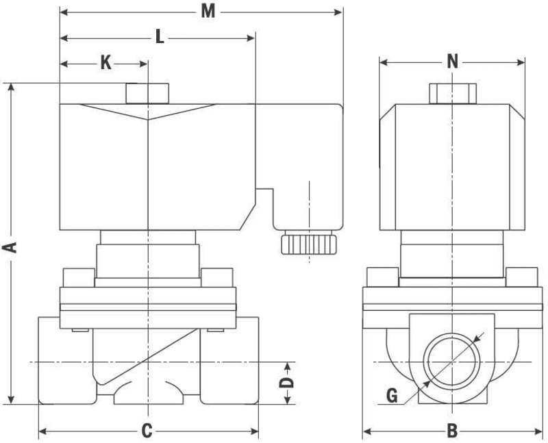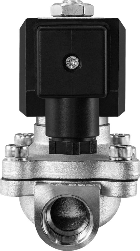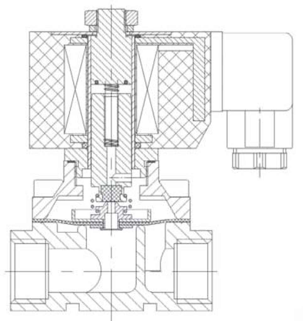 Нормально закрытый соленоидный клапан – это магнитный клапан, в котором закрытое положение сохраняется, если управляющее напряжение на его индукционную катушку не подается. При подаче напряжения на катушку нормально закрытый клапан открывается и пропускает через себя поток рабочей среды. При отключении управляющего напряжения этот клапан автоматически закрывается и перекрывает поток рабочей среды в трубопроводе. При обрыве провода управляющего напряжения клапан будет закрыт.