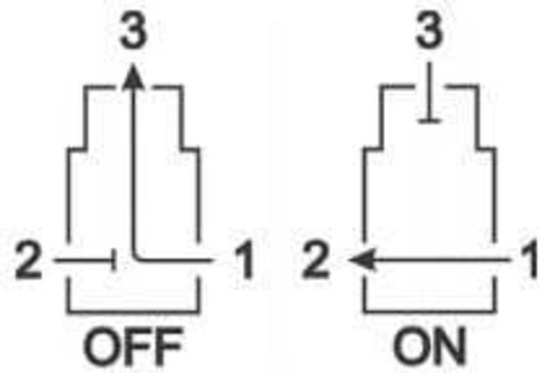 ![]() В случае отсутствия питания на катушке открыт путь 1 → 3. При подаче питания – открыт путь 1 → 2. |