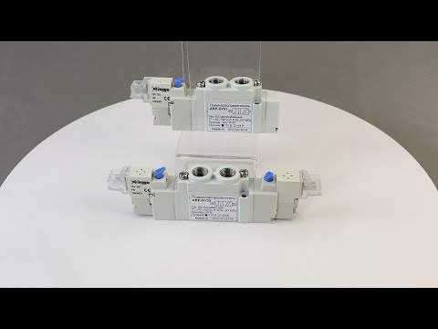 Бистабильный: при подаче питания на первую катушку воздух подается через порт питания P на рабочий порт А, при этом рабочий порт В соединен с портом выхлопа S. При снятии питания золотник остается в том же положении. При подаче питания на вторую катушку порт питания Р переключается на рабочий порт В, а рабочий порт А соединяется с портом выхлопа R. При снятии питания золотник остается в том же положении.