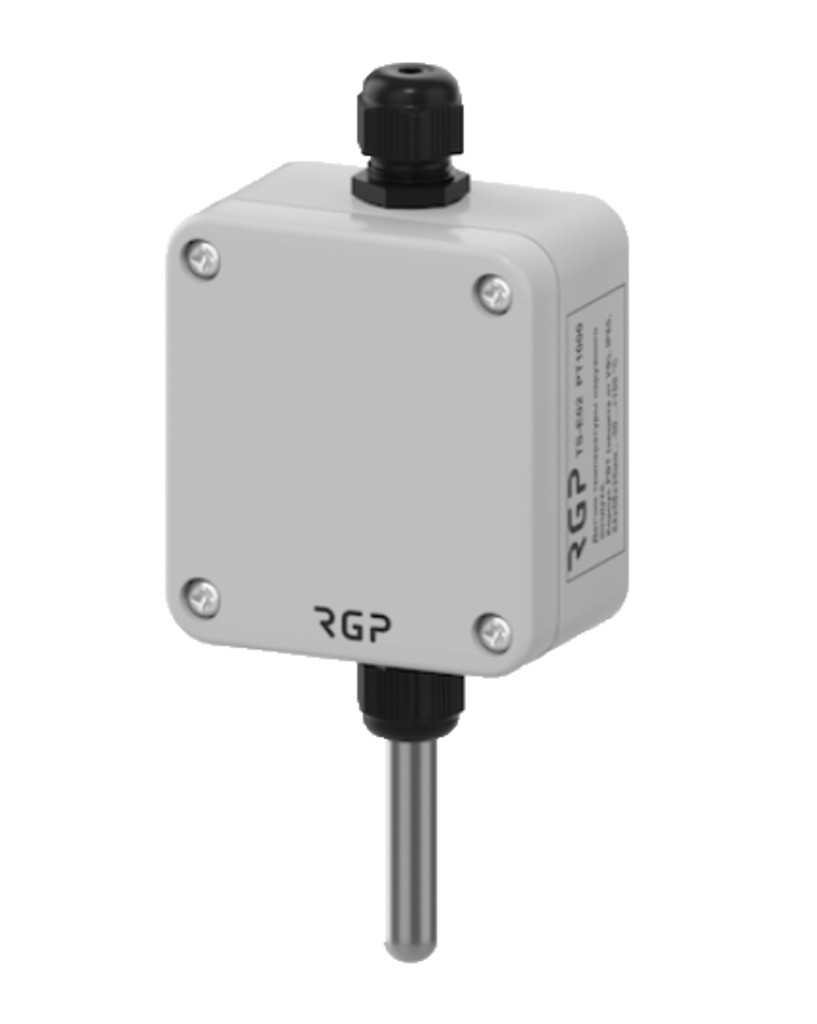 Датчики температуры серии TS-E предназначены для измерения температуры неагрессивных газообразных сред на улице и в помещениях с повышенной влажностью, например на наружных стенах зданий, в холодильных установках, в теплицах, генераторных и компрессорных. Для повышения точности измерений в датчике TS-E02 используется выносной измерительный элемент, защищенный металлической гильзой