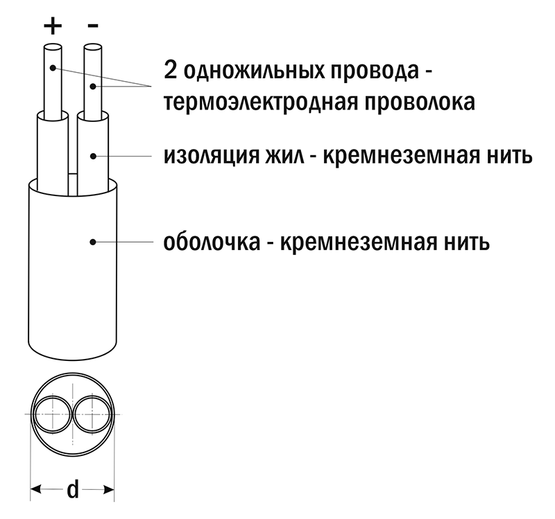 - Изоляция кремнеземной нитью позволяет использовать провод и датчики с ним при температурах до +1000°С