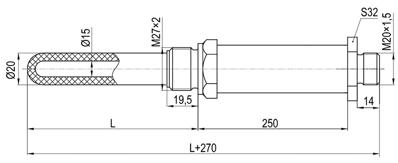 L = 250 мм, 320 мм, 400 мм, 500 мм, 630 мм, 800 мм, 1000 мм, 1250 мм l = 250 мм S = 32 мм |