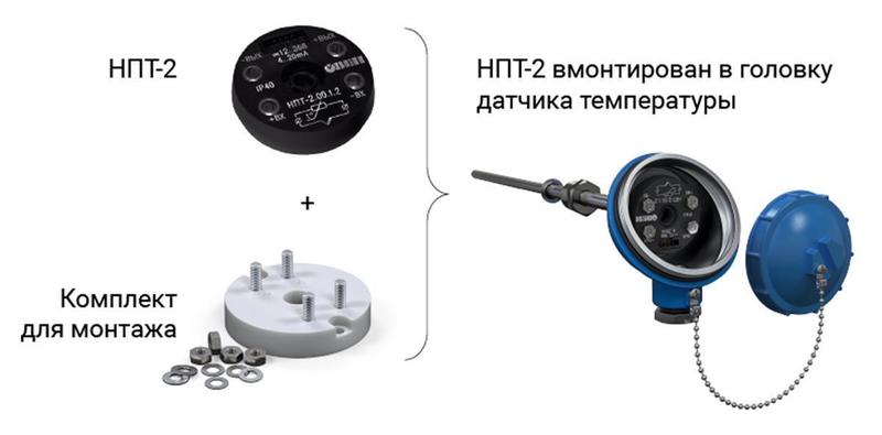 Датчики температуры ОВЕН ДТСхх5Л и ДТПХхх5Л | Нормирующий преобразователь НПТ-2 | Комплект для монтажа НПТ-2 в металлические головки датчиков |