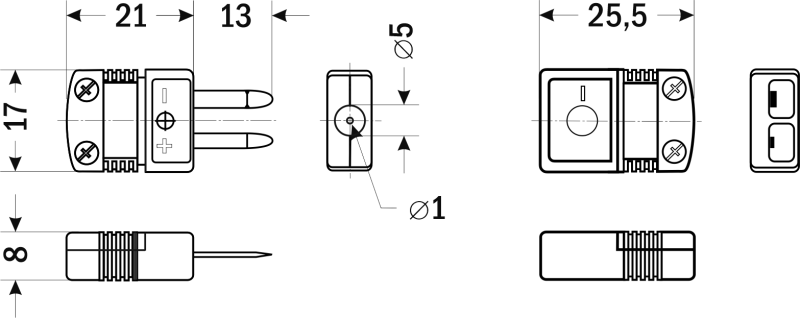 Контакты разъемов производятся из термопарных сплавов, что позволяет избежать дополнительных температурных погрешностей. Разъемы соответствуют европейскому стандарту NEN-EN 50212 (аналогичен стандартам ASTM E1129 и ASTM E1684).