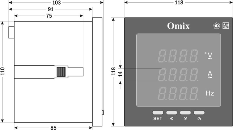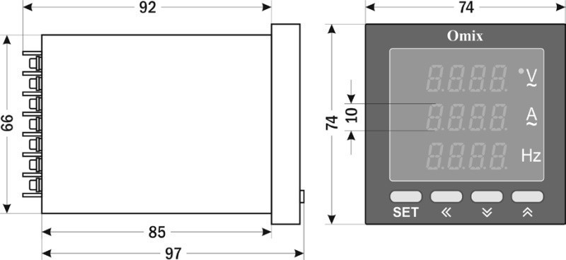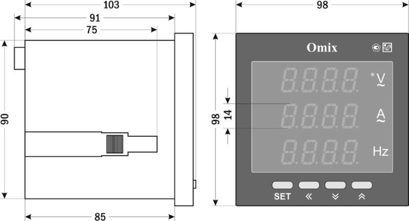 Мультиметр однофазный щитовой Omix M3-1-N2 предназначен для измерения и индикации напряжения, силы тока и частоты в однофазных сетях переменного тока